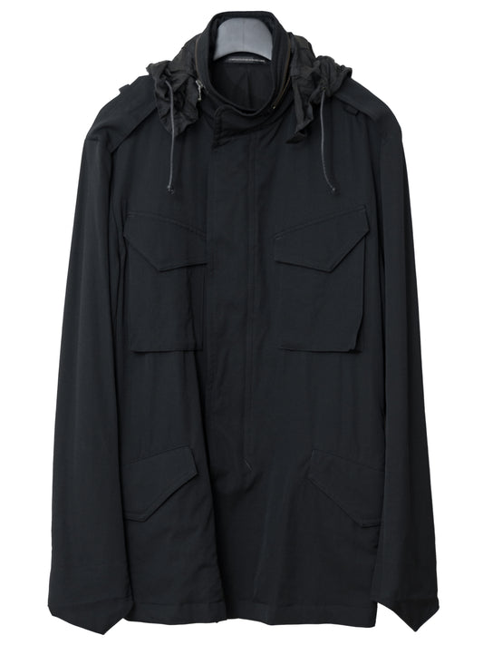 s/s 09 silk hooded m-65 jacket black ∙ wool gabardine ∙ large