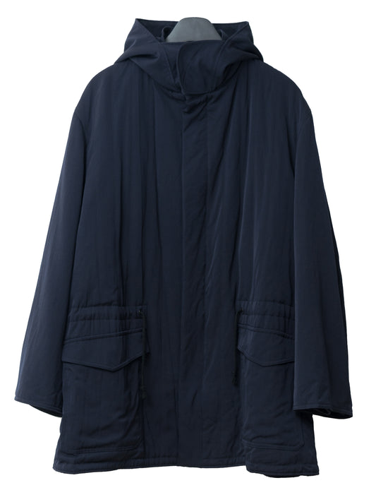 a/w 18 type 936 hooded shepherd's coat indian black dyed ∙ ryeland wool cotton doppler striped 19oz cross weave denim ∙ size 4