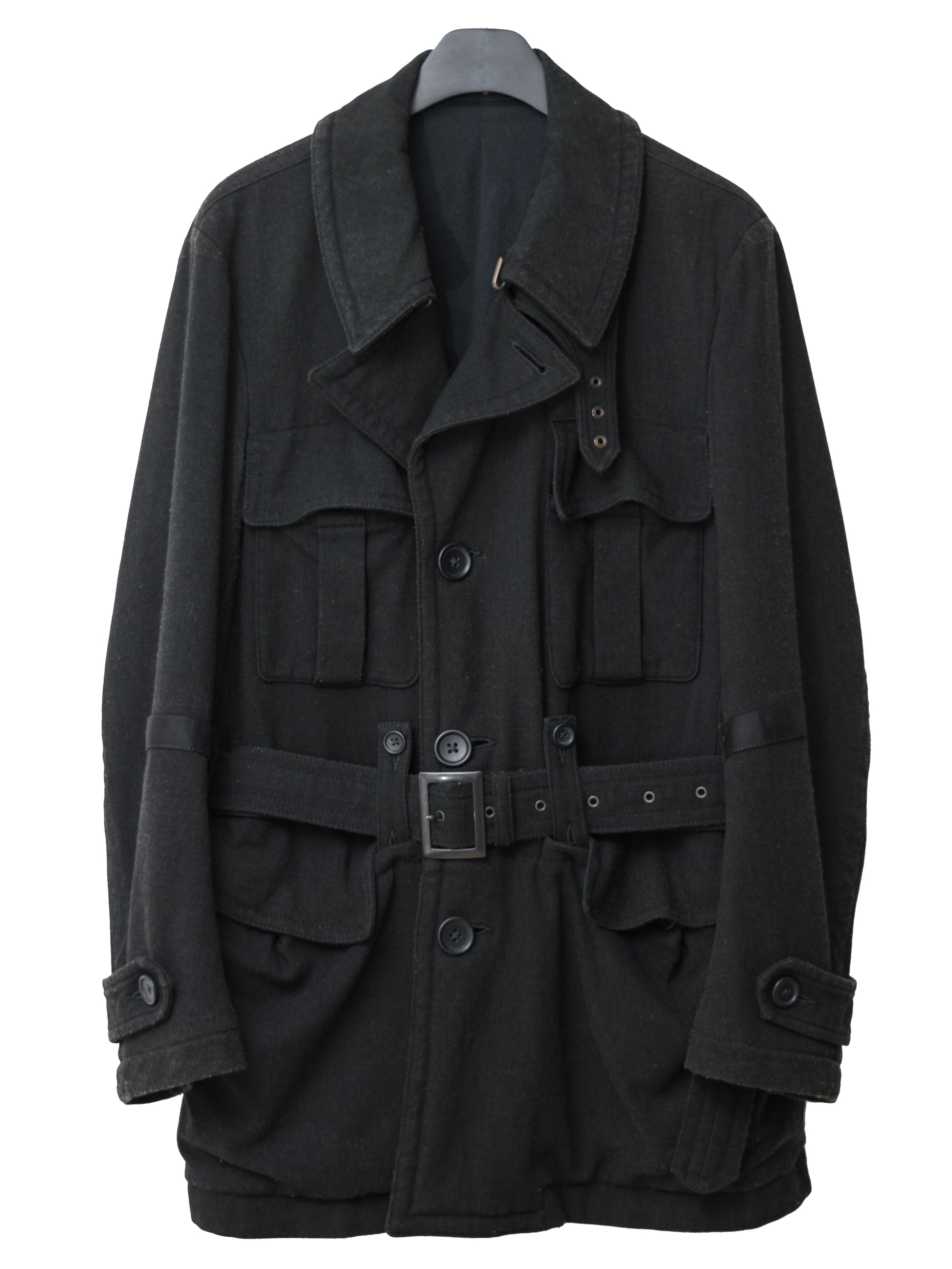a/w 07 belted shooter coat black ∙ wool nylon ∙ xsmall