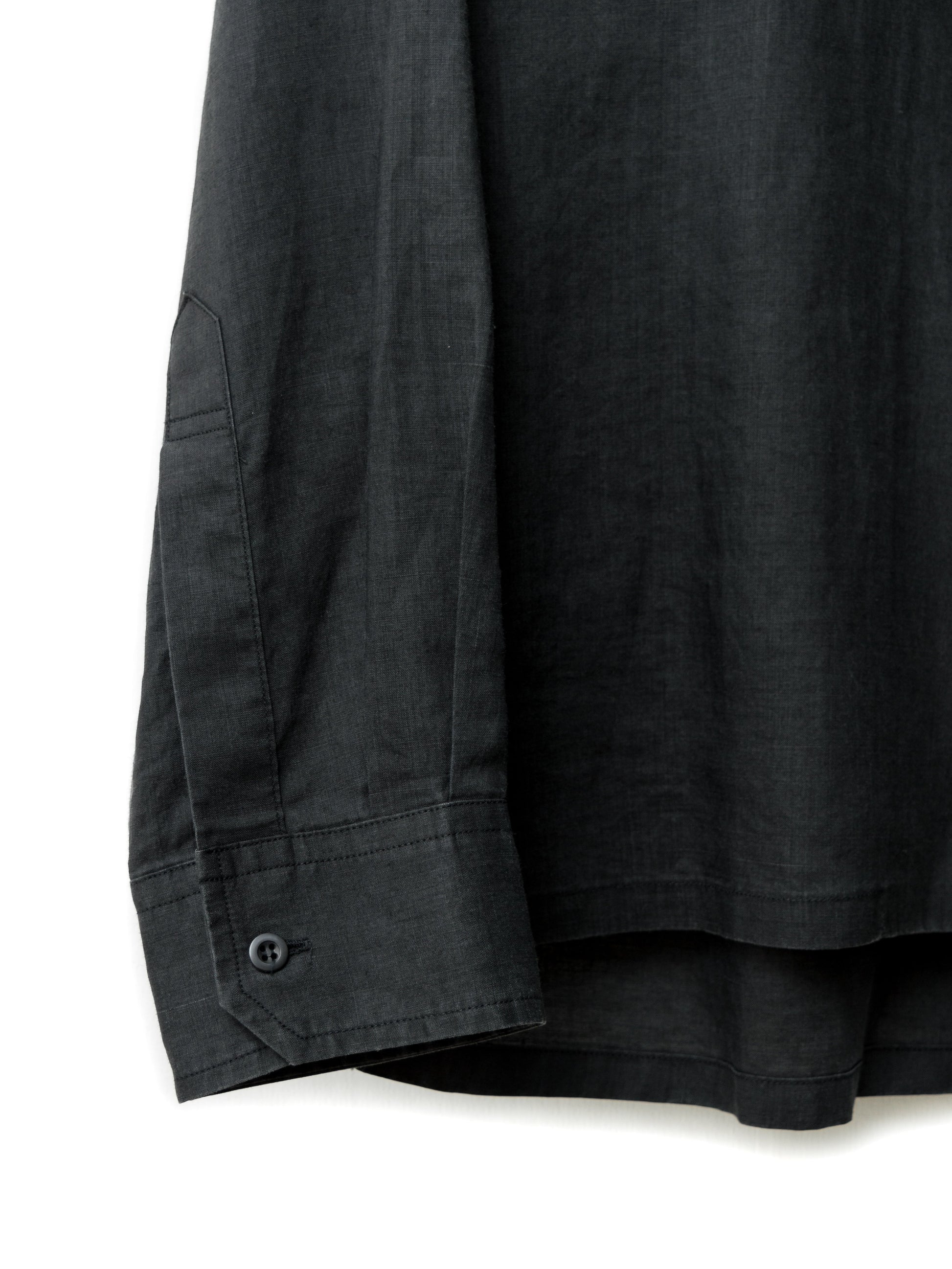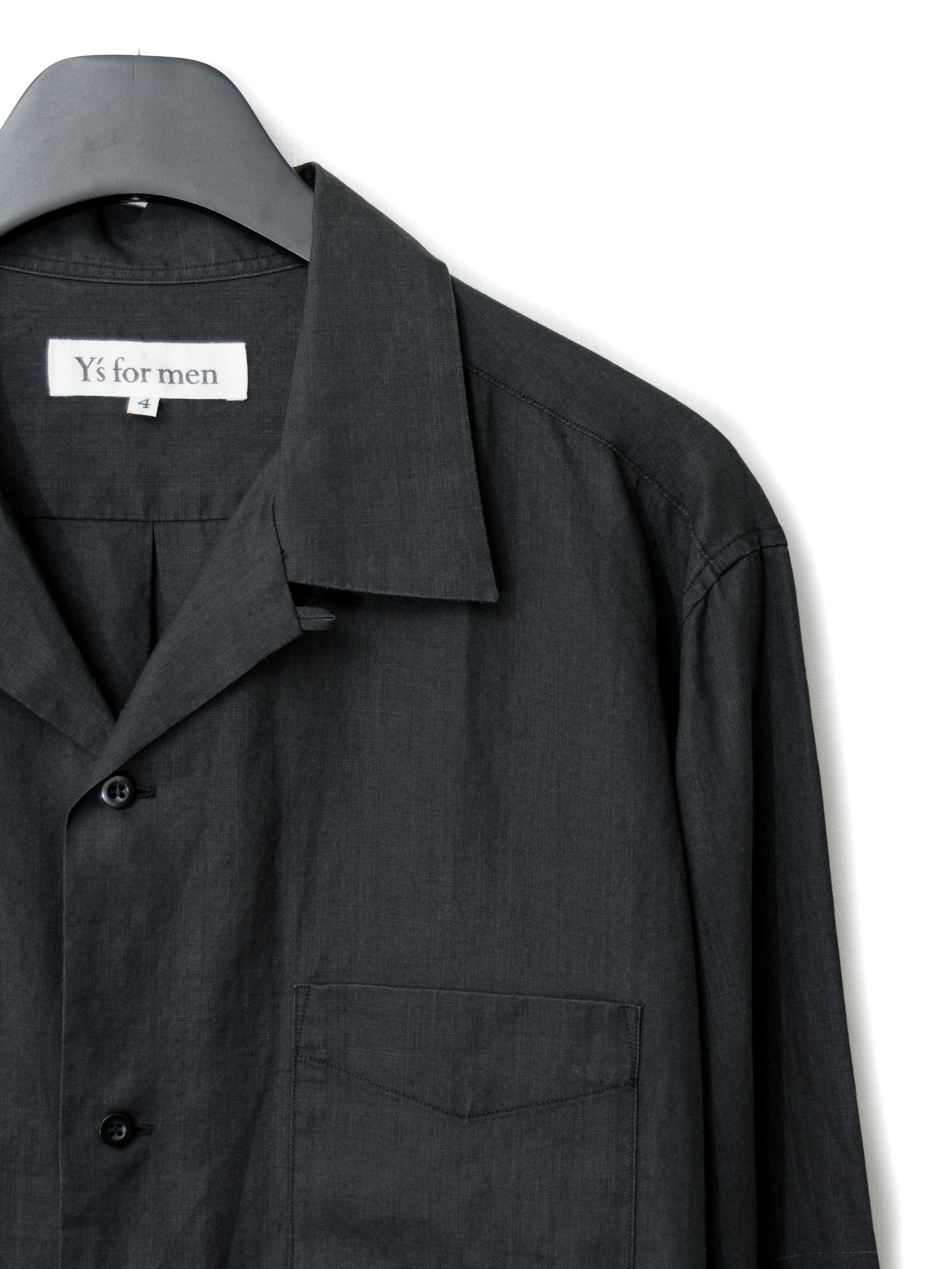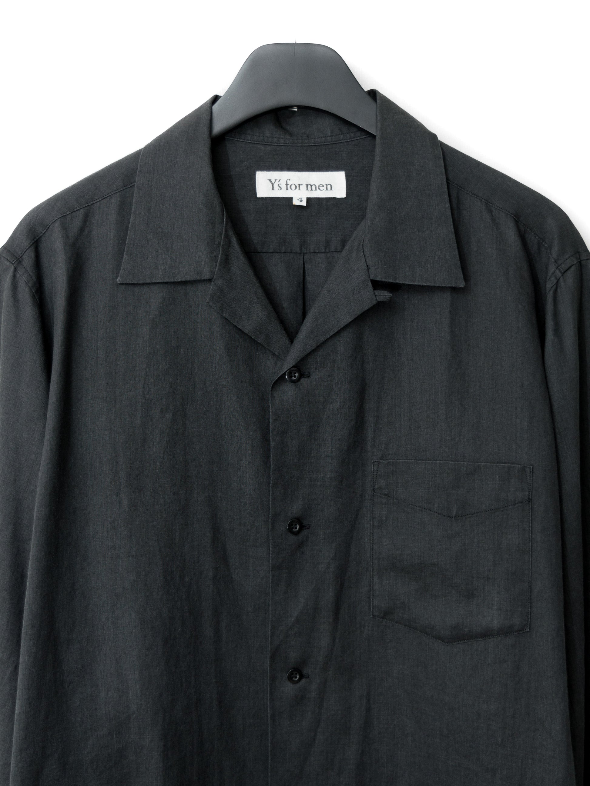 open collar shirt black ∙ ramie ∙ large