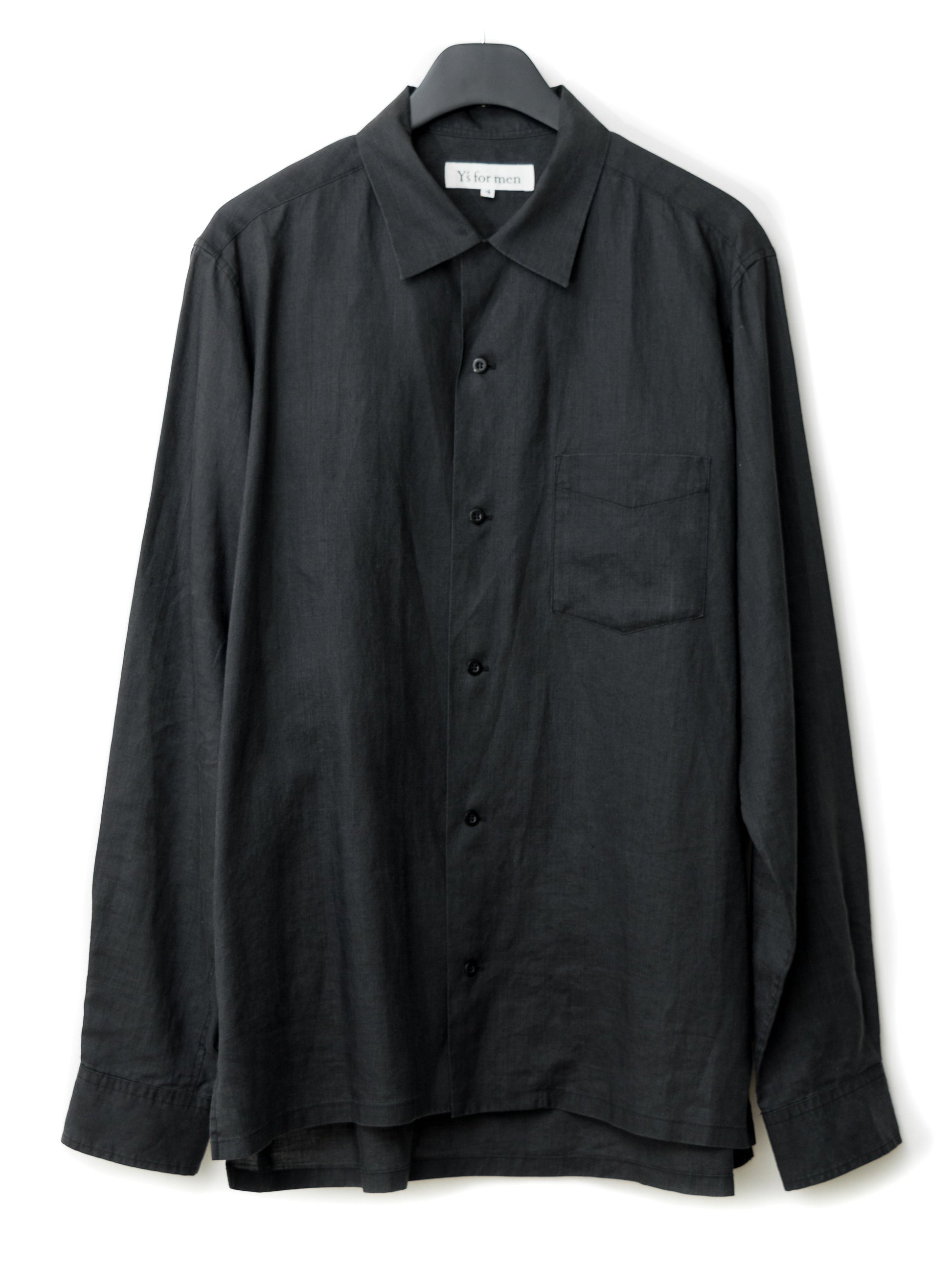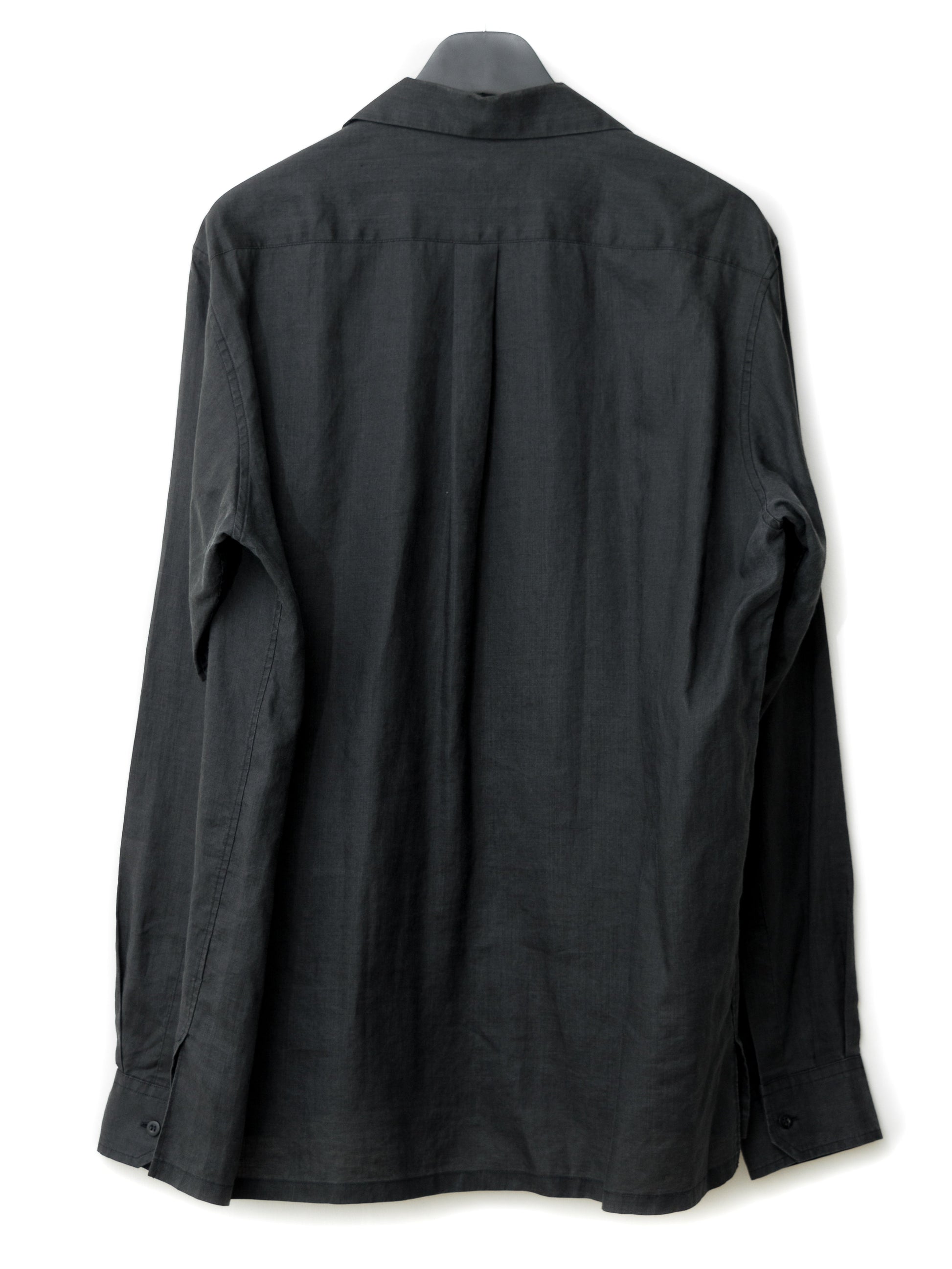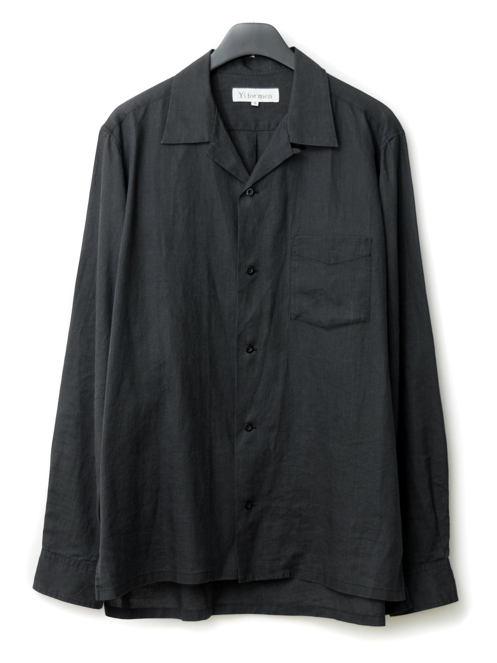 open collar shirt black ∙ ramie ∙ large