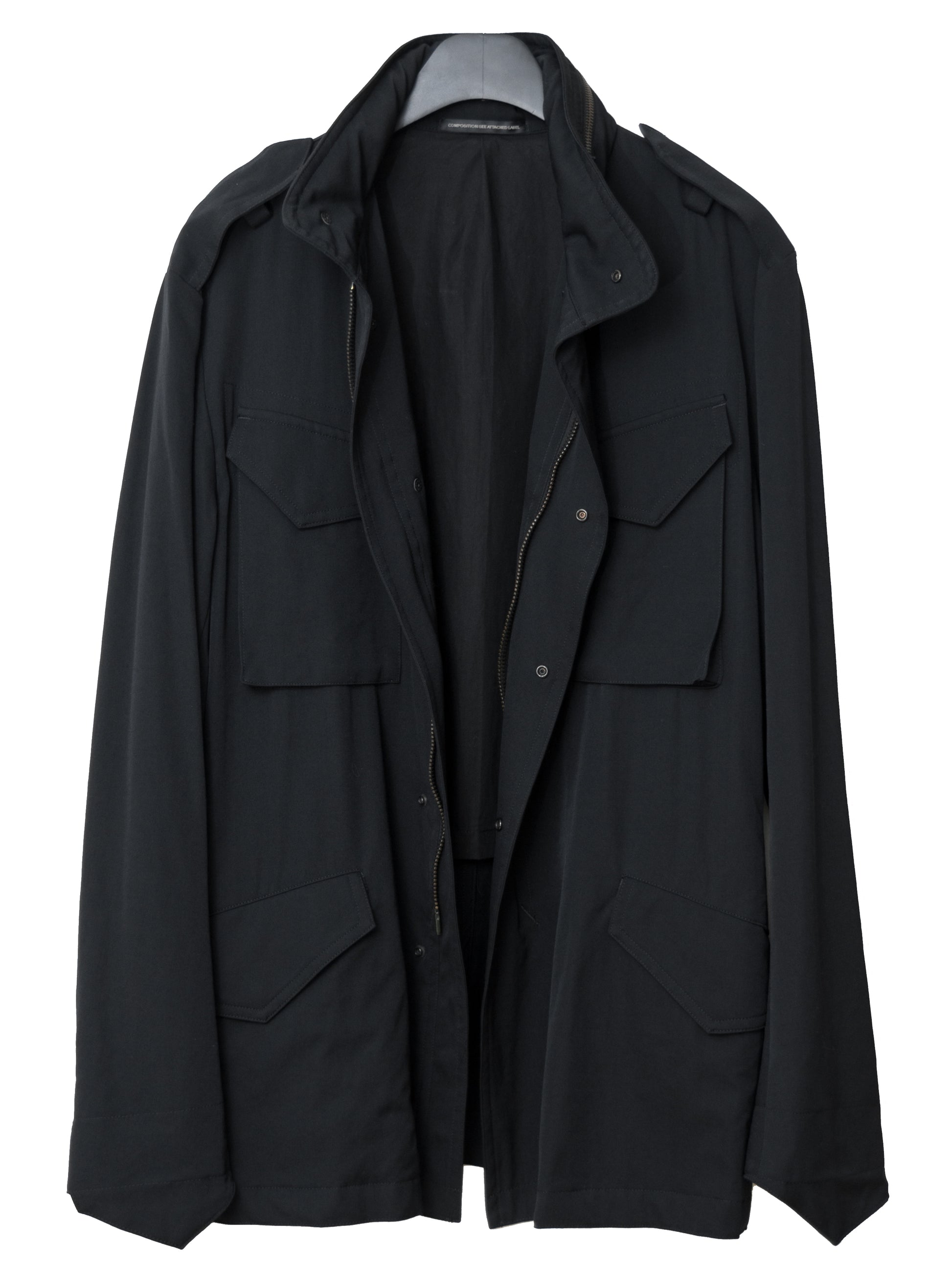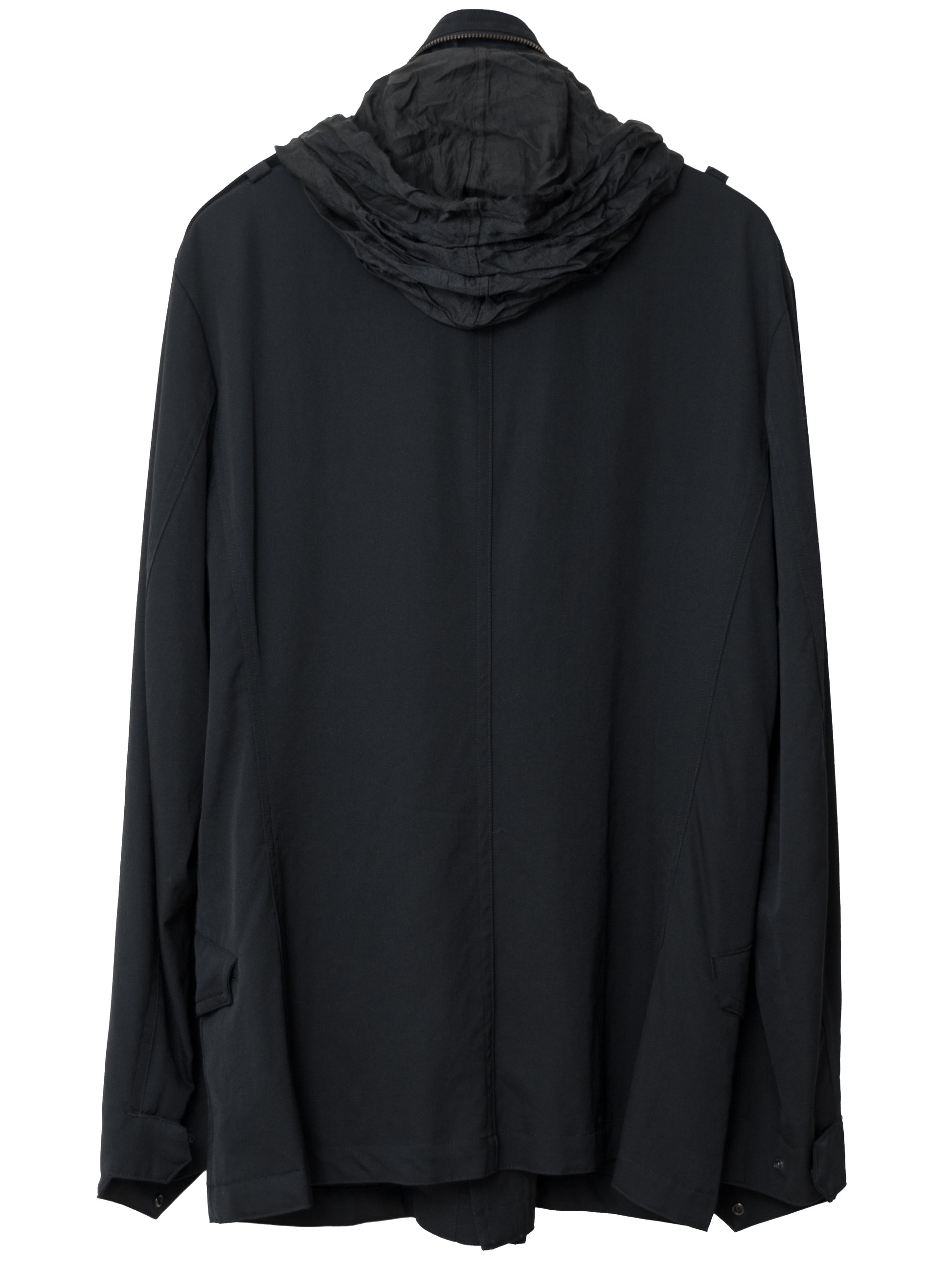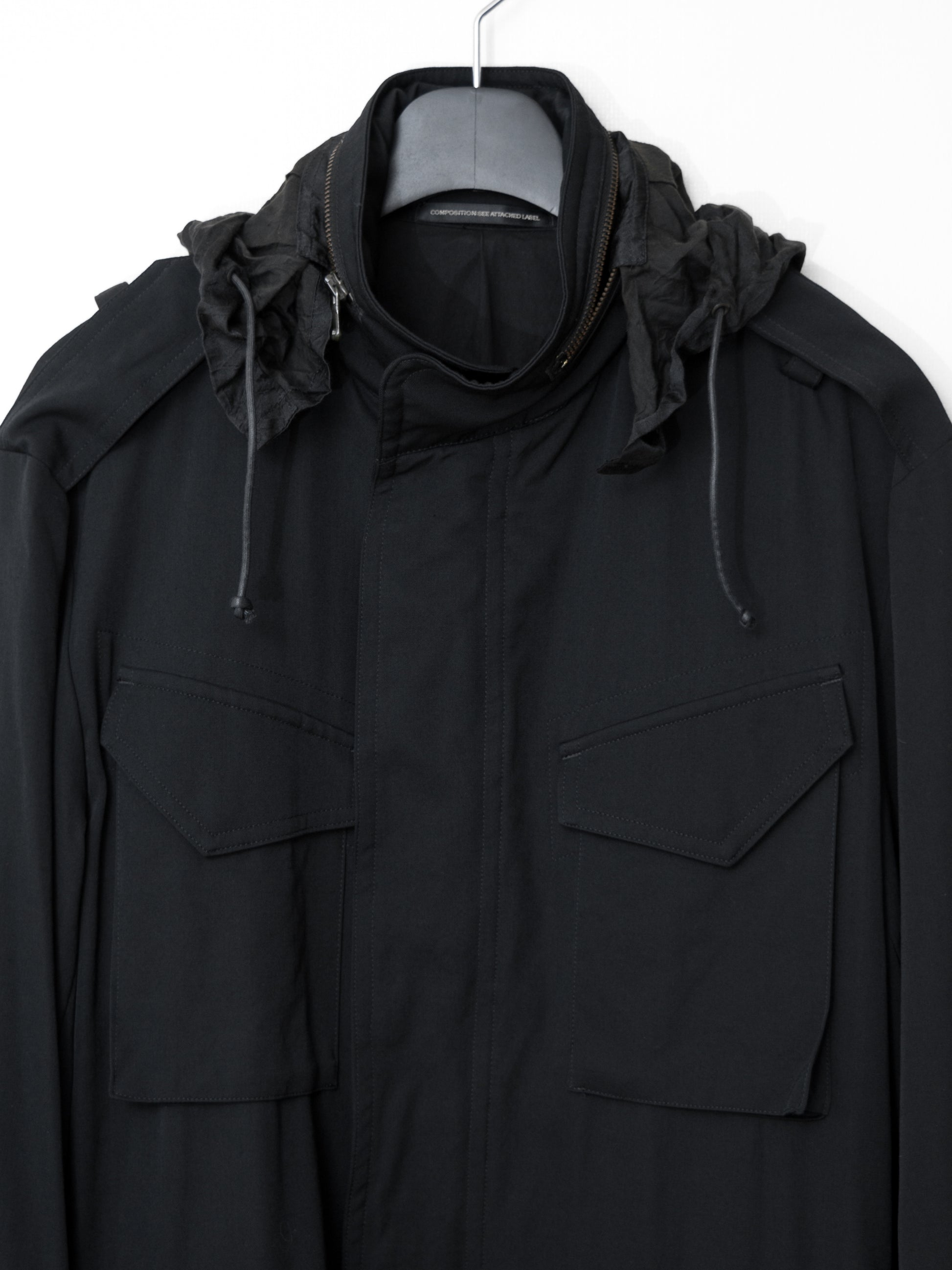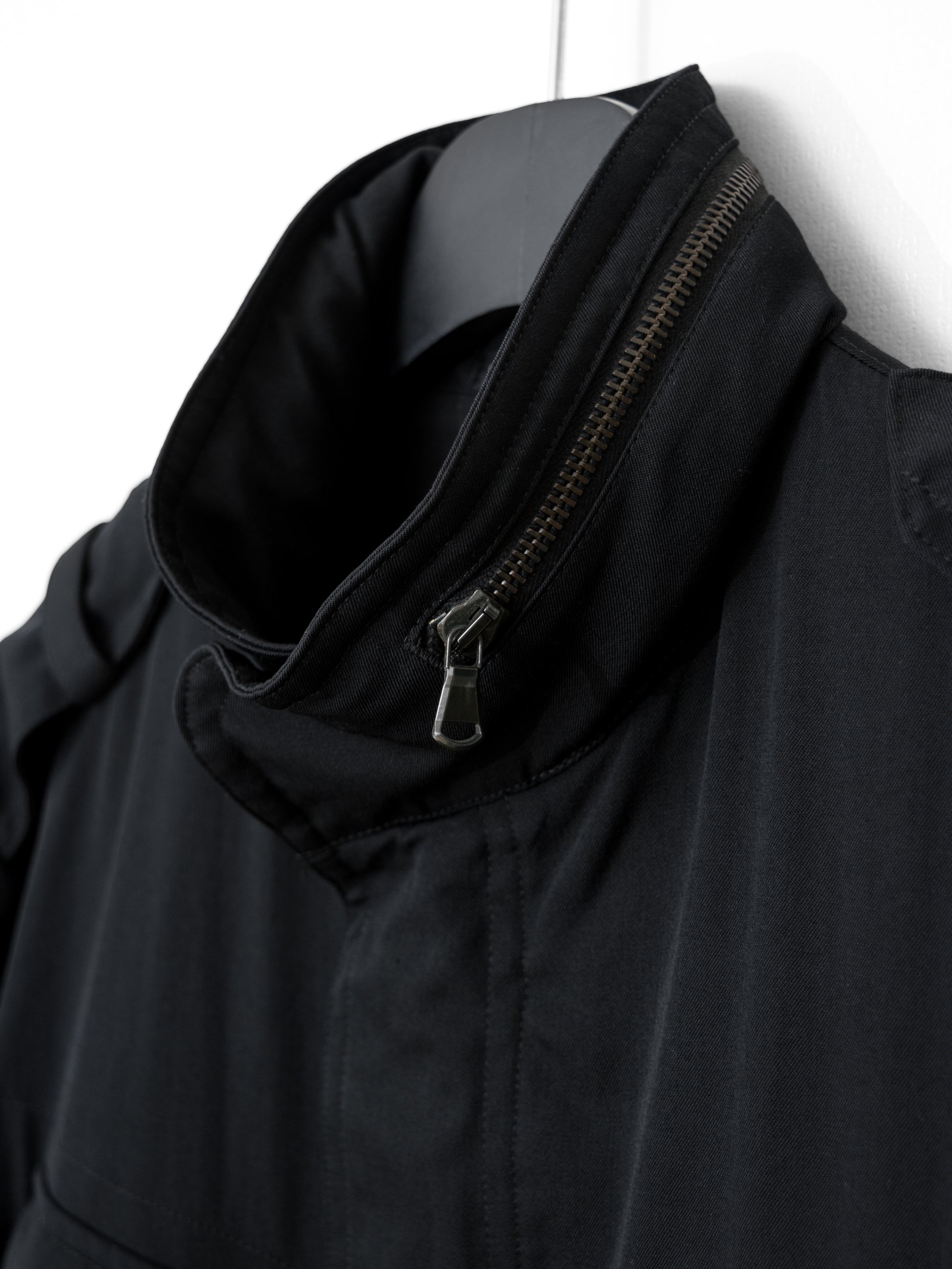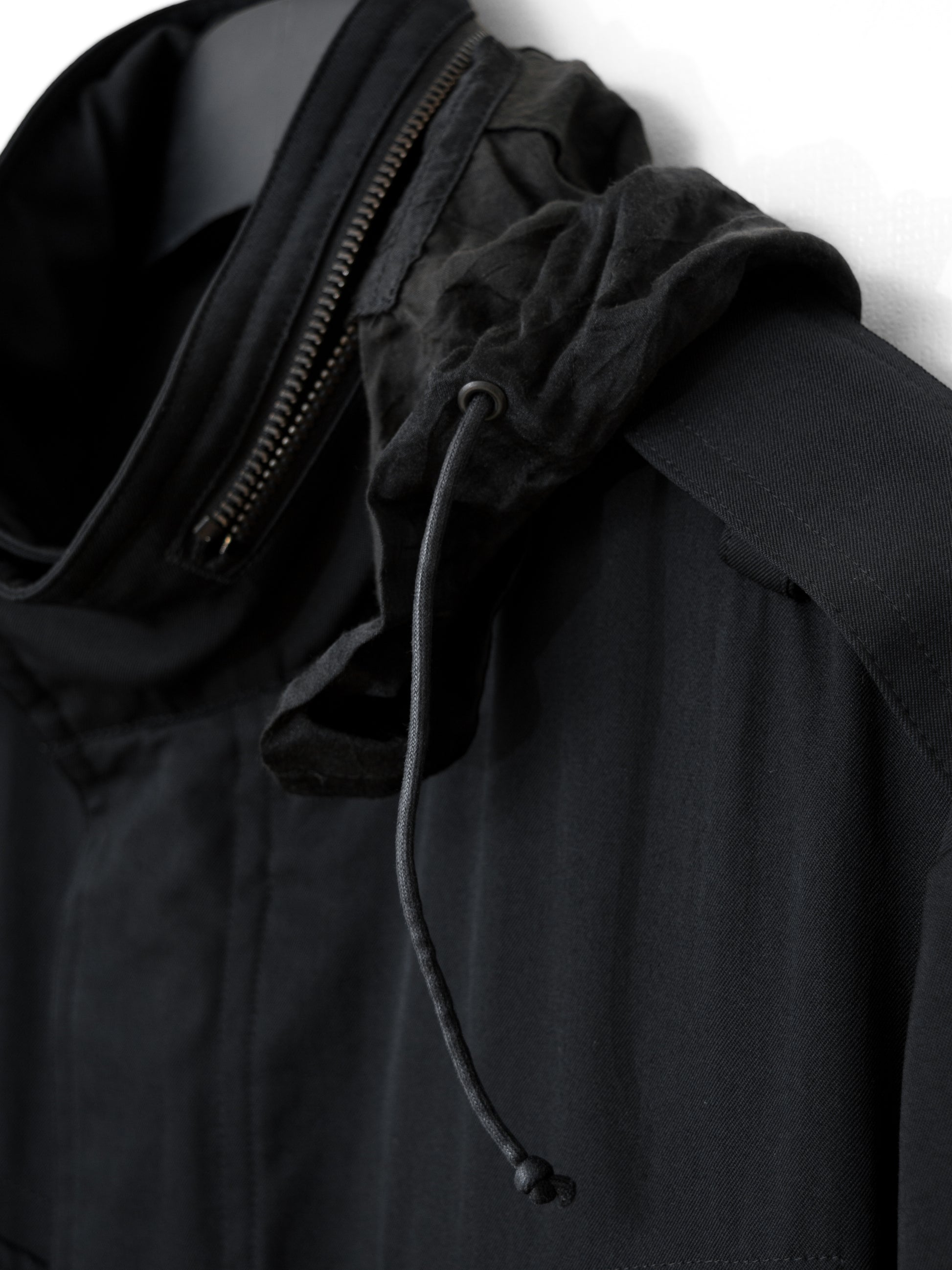 s/s 09 silk hooded m-65 jacket black ∙ wool gabardine ∙ large