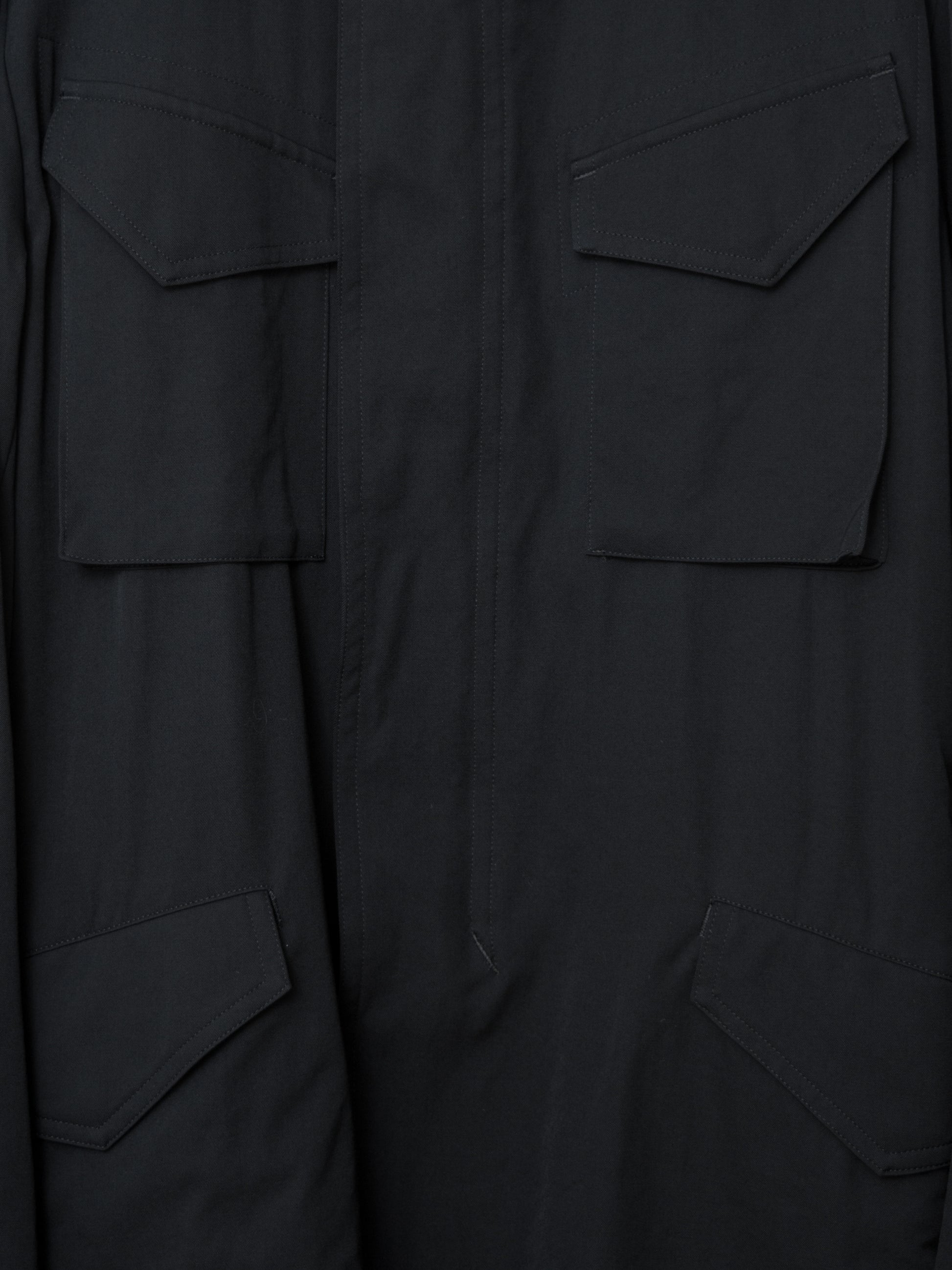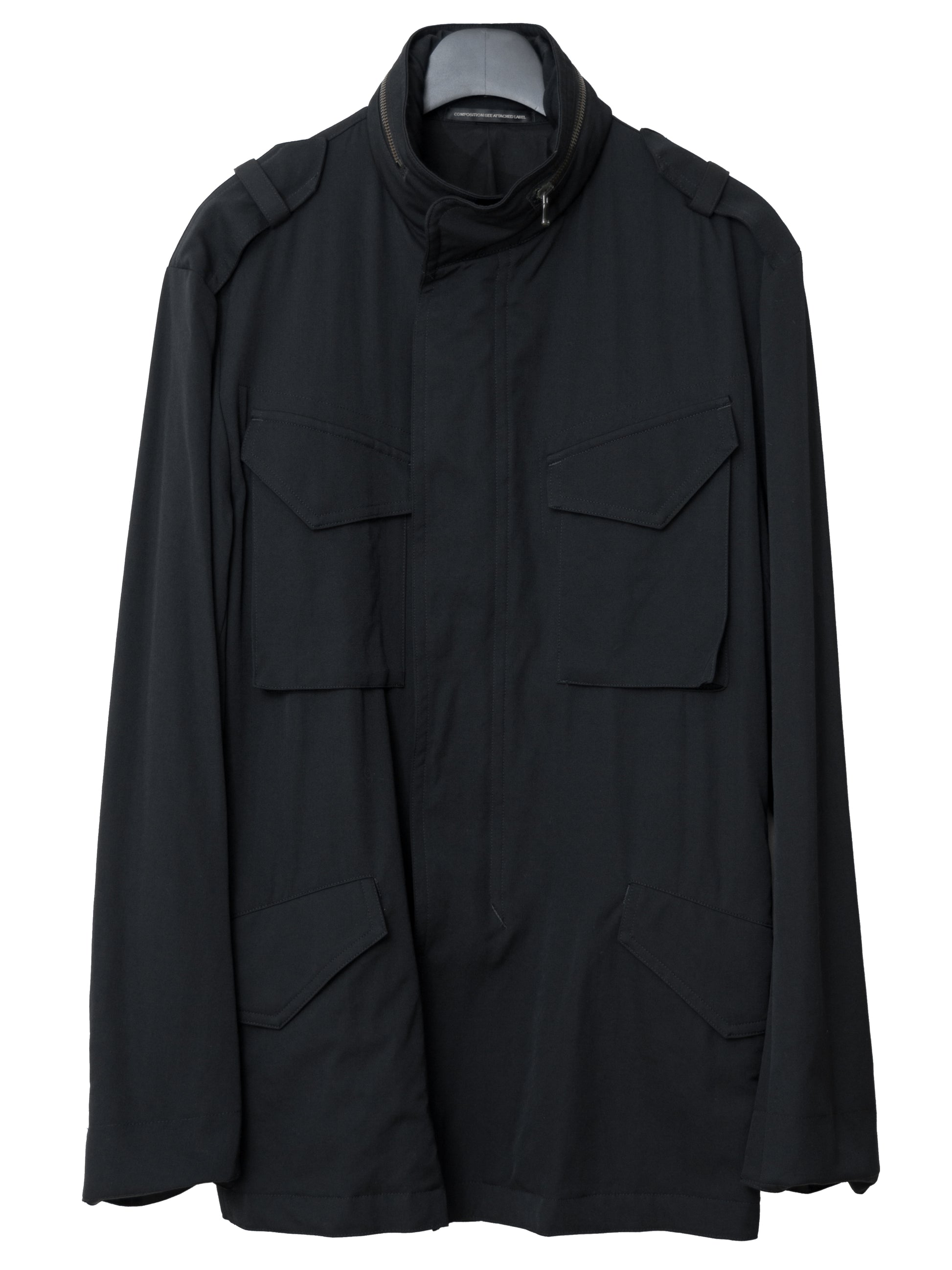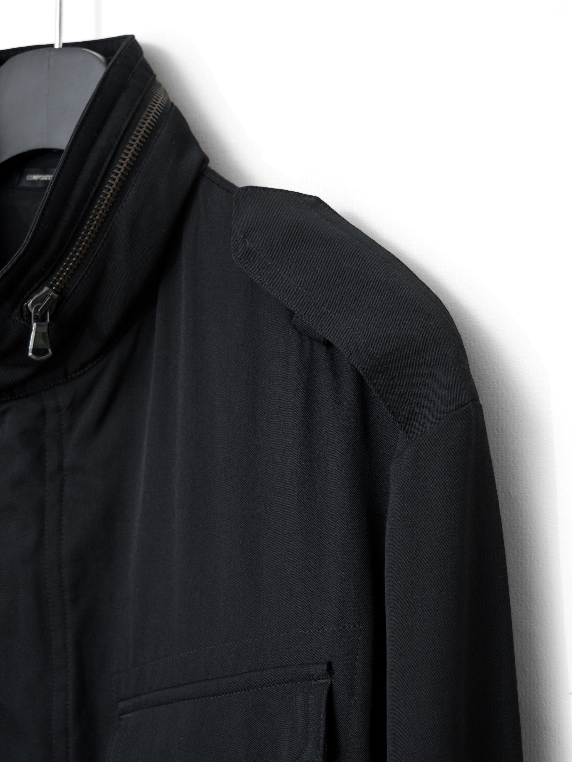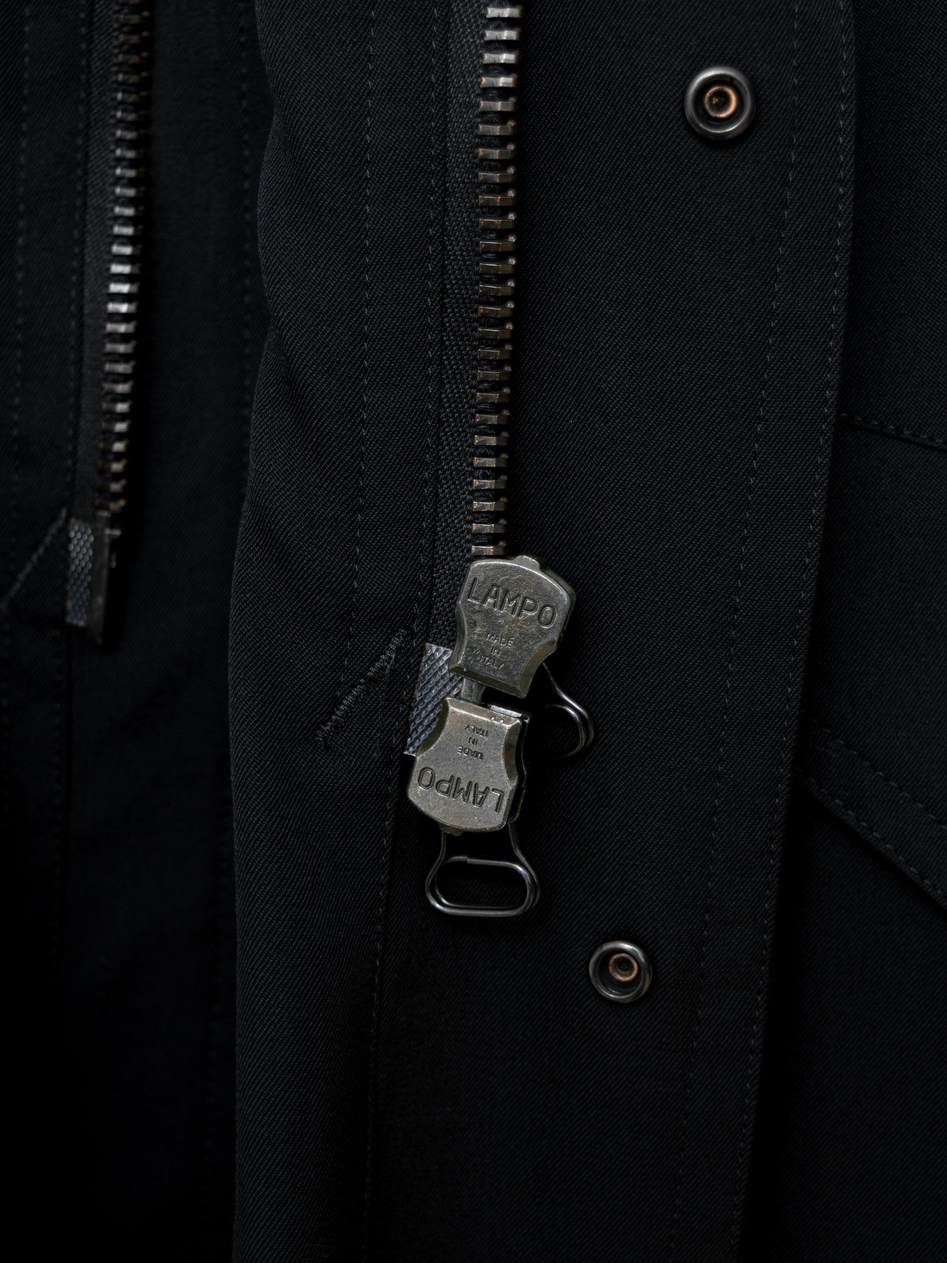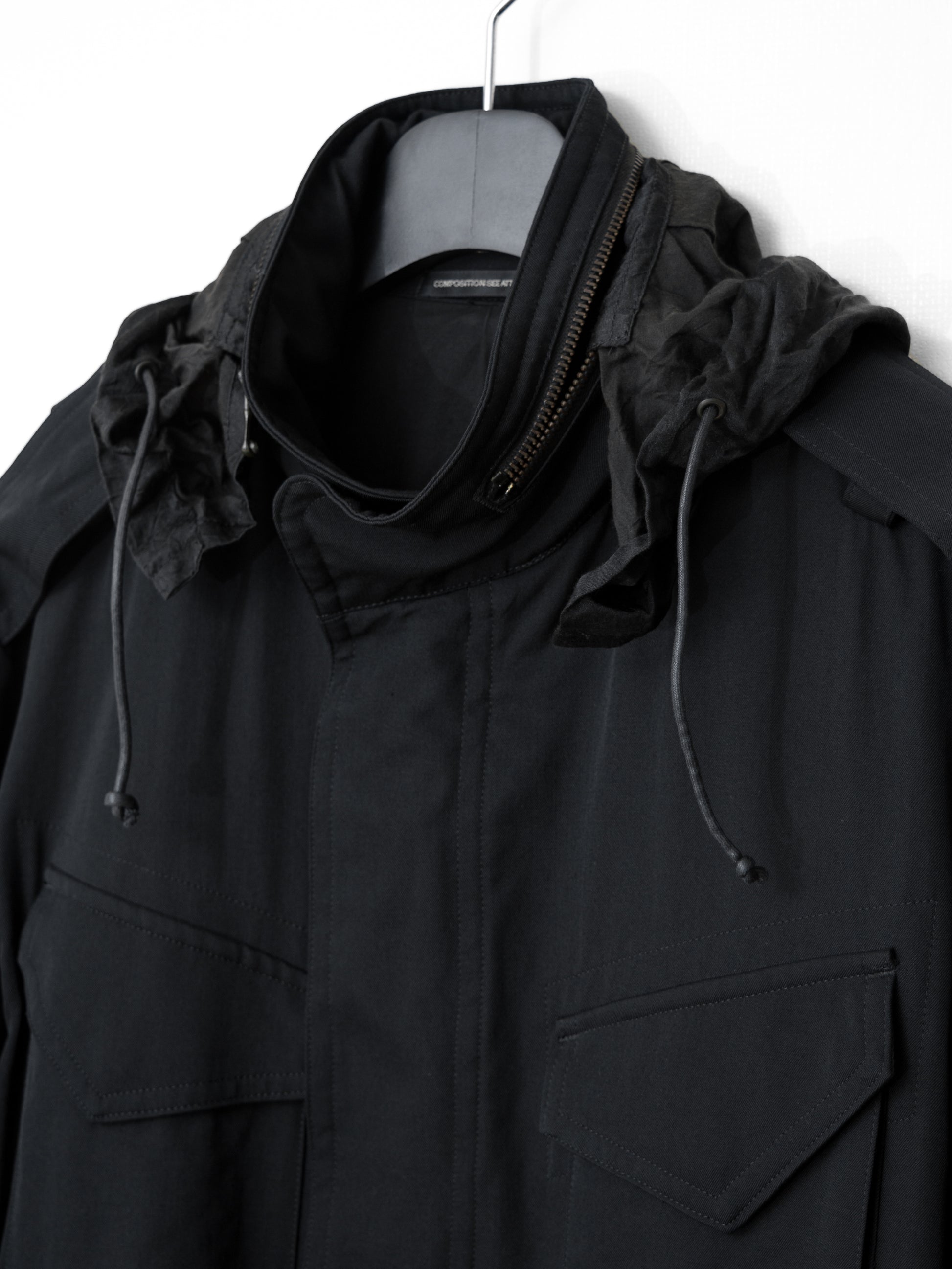 s/s 09 silk hooded m-65 jacket black ∙ wool gabardine ∙ large