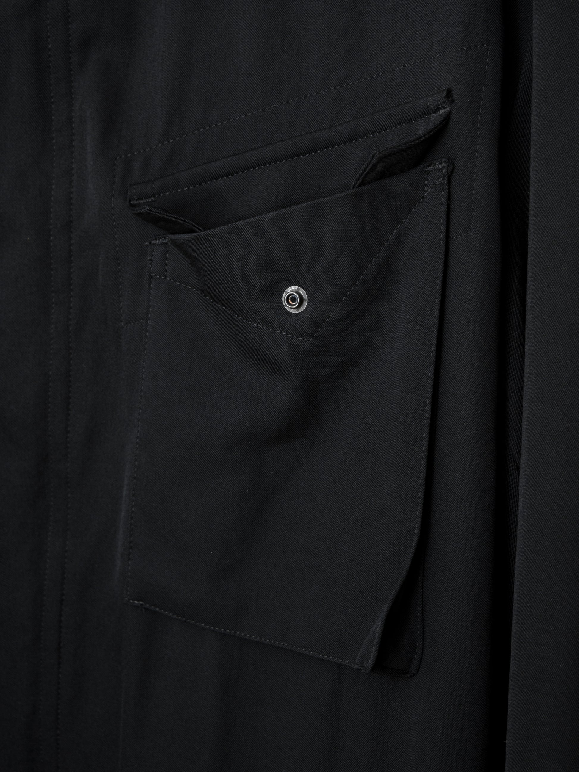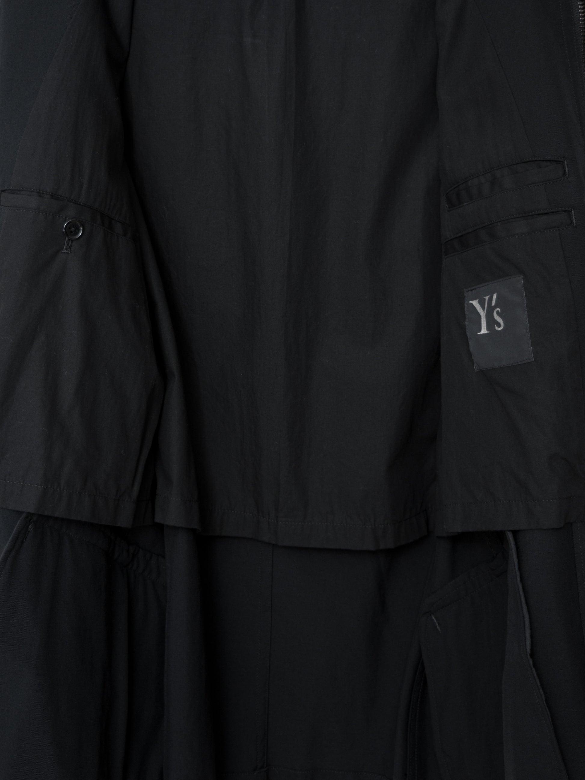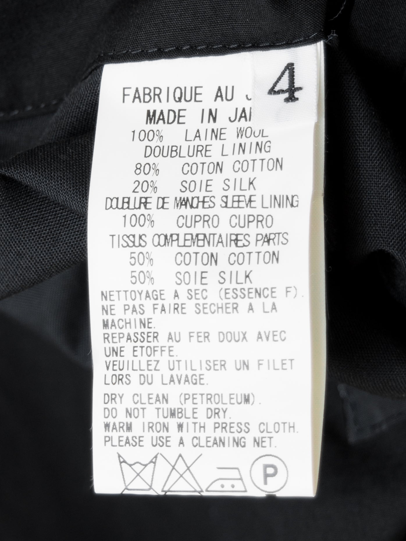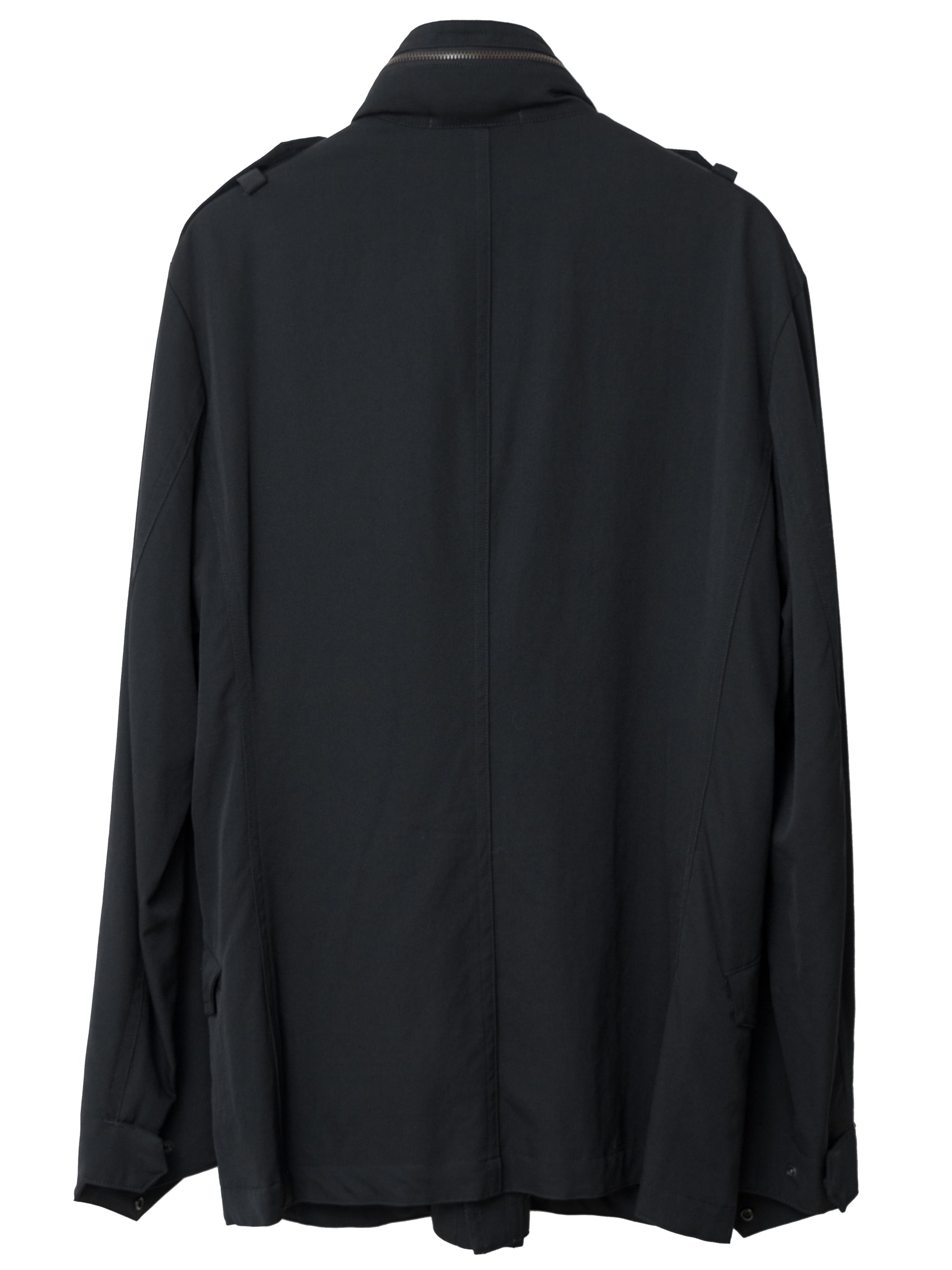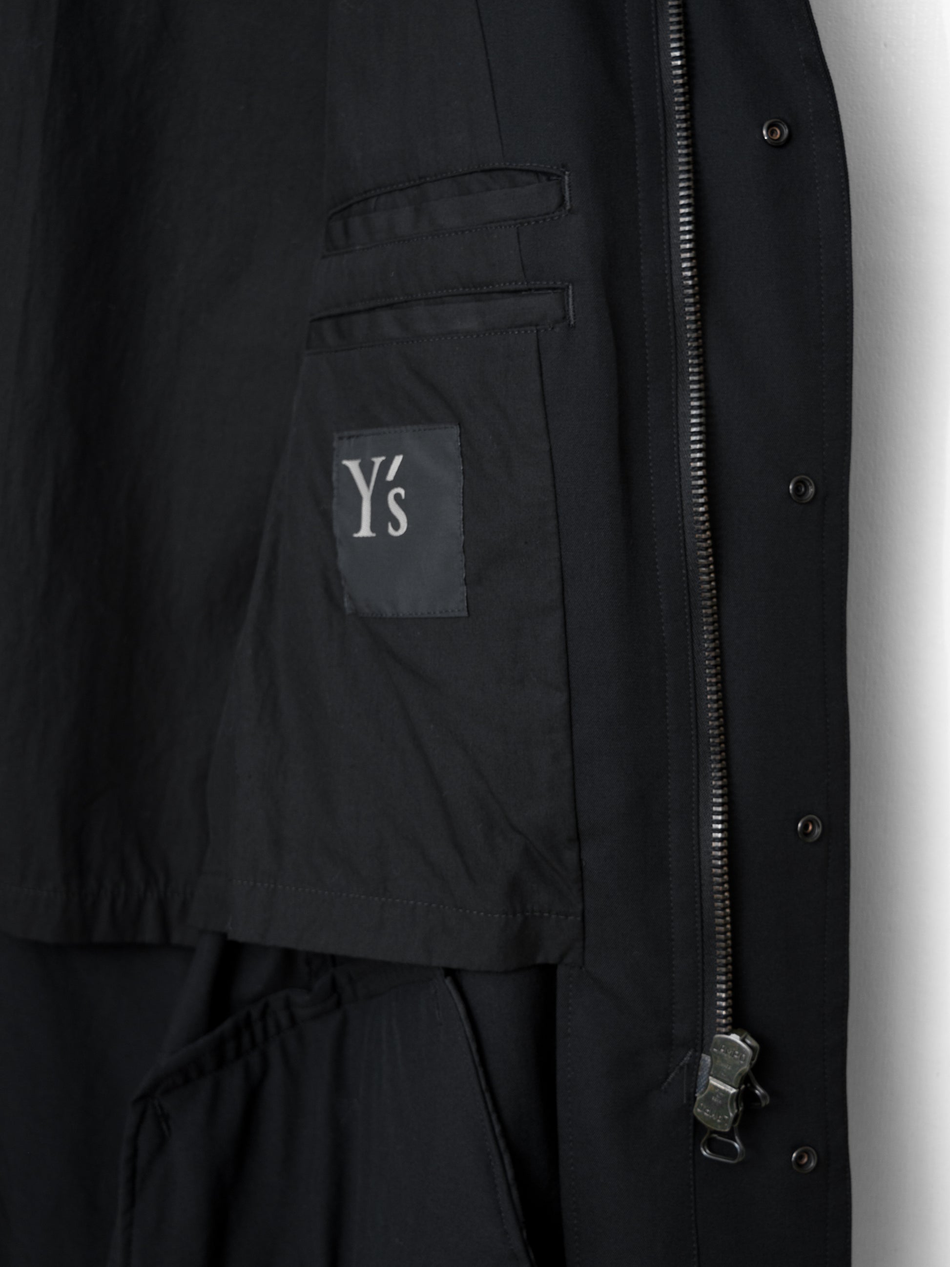 an absolute masterpiece from the second last season of y's for men with an impeccable cut. utilitarian elements elevated to the highest degree, from materials and hardware to functional and decorative stitching. the wool gabardine used during this era (pre-bankruptcy) feels of much better quality than current items. a buttery smooth lampo zipped collar in antique gunmetal finish unzips to reveal a packable hood in lightweight cotton silk, complete with metal eyelets and premium wax coated drawstrings for a delicate, luxurious point of contrast from the rest of the garment. the epaulettes can be fixed to cover or pass through the loops for a more pronounced or subdued look. the double zip front also uses heavy duty italian lampo zippers (almost never seen in yohji garments) that feel like a dream to use. the cuffs are also adjustable in 2 ways, allowing for various styling options with the tightening of the wrist and / or usage of the wrist guard that partially covers the back of the hand. plenty of storage with dimensional chest pockets, side pockets, and 3 inner chest pockets. as expected from yohji the interior is not a place of compromise but rather of private luxury, with a fine cotton silk lining for the body and silky smooth cupro for the sleeves. looks amazing layered under heavier outerwear / coats in fall-winter with the hood out. extremely rare item that i was reluctant to let go of, hoping someone else can put it to good use. tagged size 4 (large), recommended for mediums or those between a medium and large.
